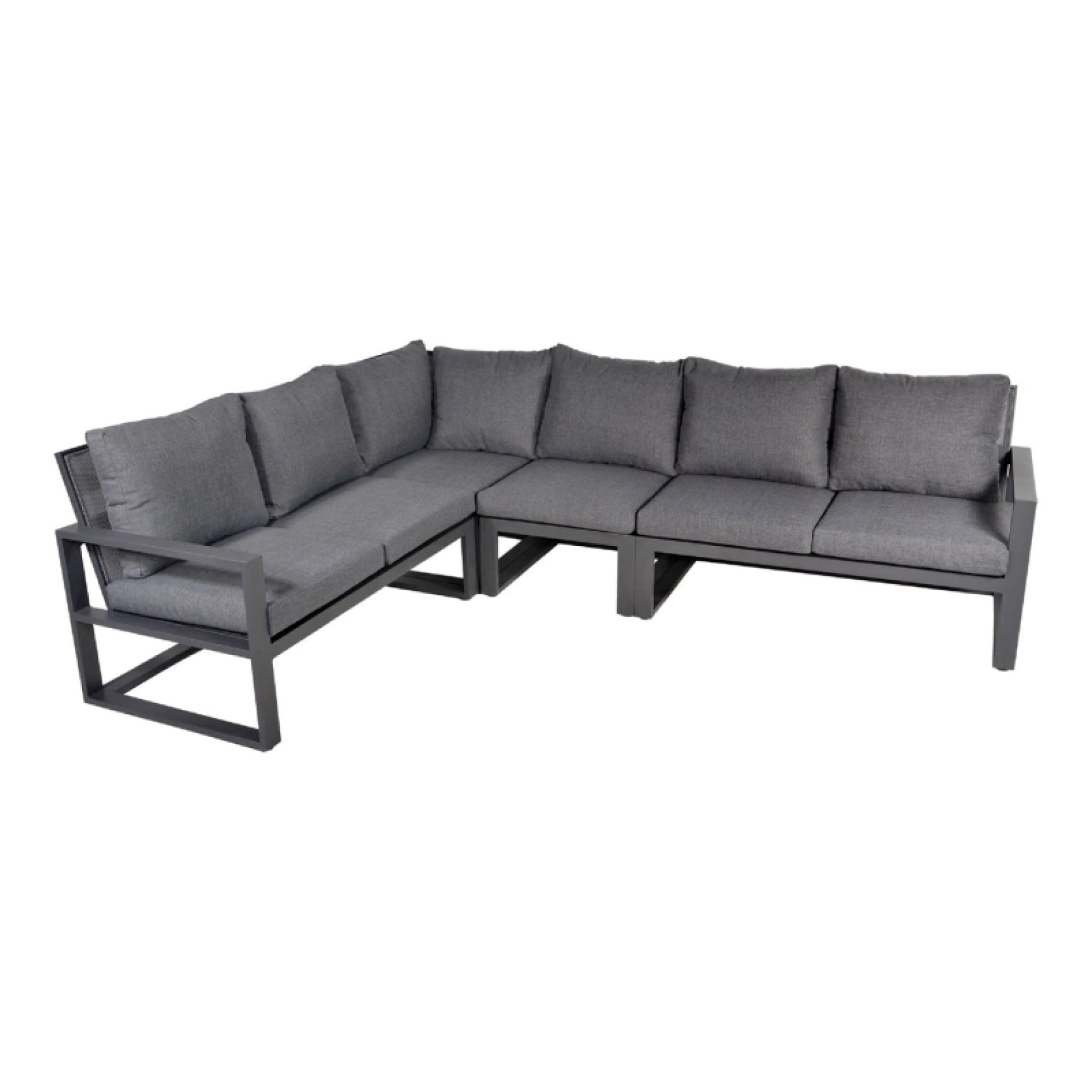 De Lesli Living Loungehoekset Pina Colada Negro is een prachtige comfortabele toevoeging aan je moderne tuin of terras. Het frame van de loungehoekset is gemaakt van aluminium en het een antraciet kleur, dit zorgt voor een stevig, lichtgewicht en stabiel frame. De Loungehoekset Pina Colada Negro heeft comfortabele kussens van 10 cm dikte gemaakt van olefin stof in een grijze kleur. Daarnaast heeft de hoekset een los middendeel, dit maakt de set in verschillende opstellingen neergezet kan worden.
