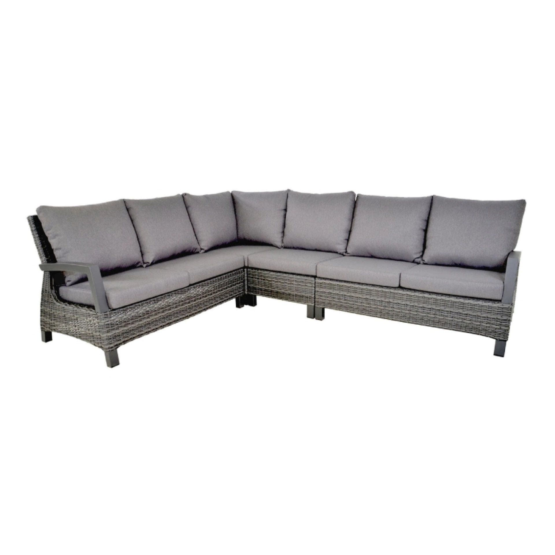 De Lesli Living Loungehoekset Prato Forte is een stijvolle en comfortabele set, die plaatst beidt aan 5-6 personen voor ontspannende momenten in u tuin. Het gebruik van hoogwaardig wicker en een stevig aluminium frame maken de set eenvoudig te onderhouden en uitstekend bestand tegen de weersinvloeden. Het is afgewerkt in een antraciet kleur. Het losse middendeel maakt het mogelijk om de set in verschillende opstellingen neer te zetten. De comfortabele dikke kussens gemaakt van olefin maken de set compleet.